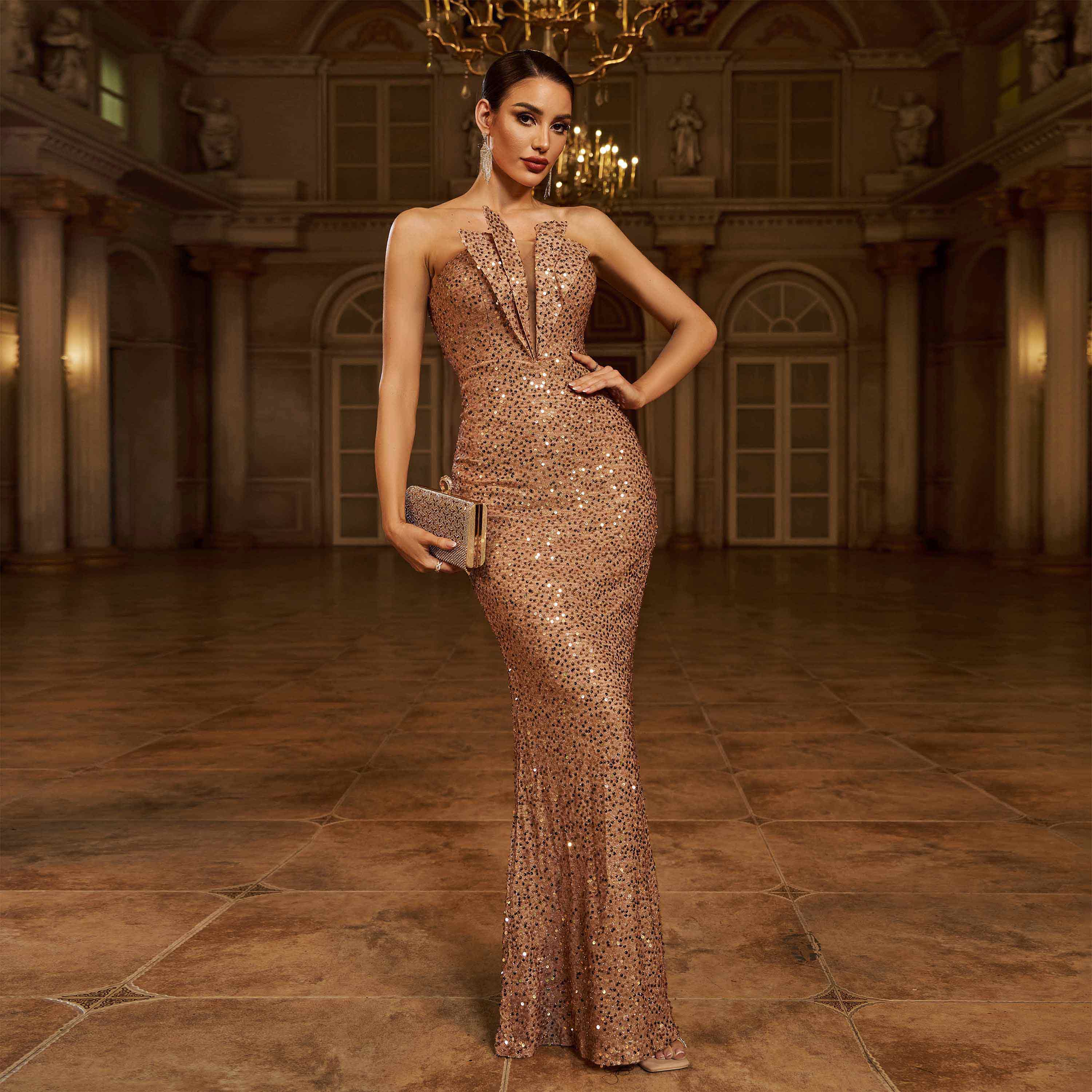 Glitzerndes, figurbetontes Kleid mit V-Ausschnitt FT2561