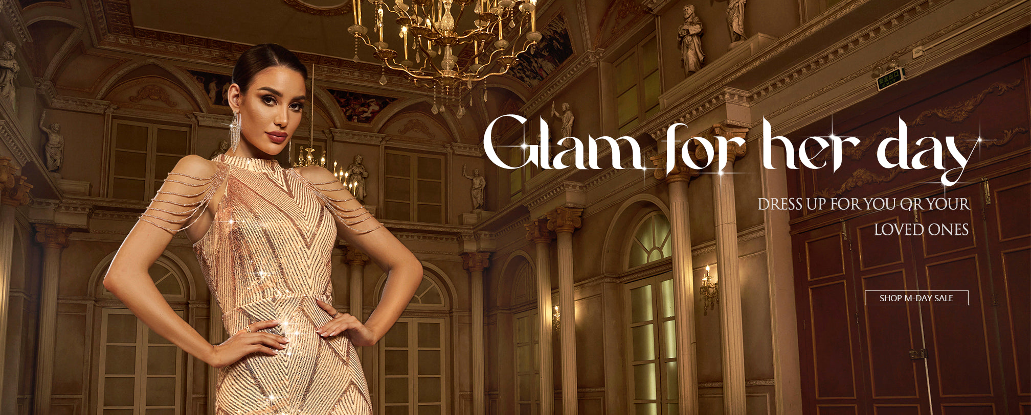 Kalte Schulter, Perlenkette, elegantes Pailletten-Abschlussballkleid M01081