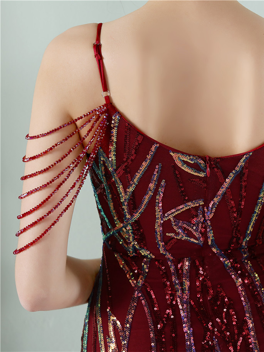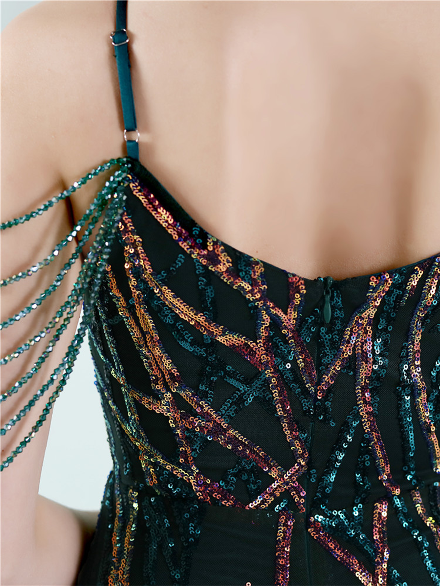 Detail: Kontrast-Mesh, Perlen, Kontrast-Pailletten, Spaghettiträger