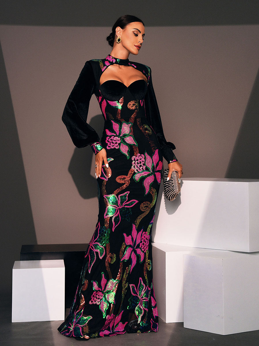 This stunning formal dress features a bold cutout design, elegant lantern sleeves, and a flattering mermaid silhouette adorned with sparkling sequins. Perfect for making a statement at any formal event, this dress will surely turn heads and make you feel like a star. Shine bright with this mermaid sequin dress!