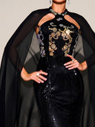 Cape Sleeve Mermaid Sequin Formal Dress DH80100