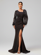 Make a statement with our Classic Knot Long Sleeve Evening Dress! This elegant dress features a classic long sleeve design with a twist - a panel of sequins and a stylish split knot detail. Perfect for any evening event, this dress will have you turning heads and feeling fabulous!