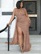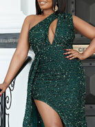 Stand out in this quirky and fun Plus Size Openwork Sleeveless Split Sequin Maxi DarkGreen Formal Dress! With its unique openwork and sparkling sequins, this dress will make you the center of attention. Perfect for any formal event, this dress is sure to bring out your playful side.