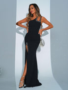 Be a showstopper in our one shoulder cutout split prom dress! With a unique design and trendy cutouts, this dress will have you standing out from the crowd. Amp up the fun with this flirty and playful dress, perfect for prom or any special occasion.
