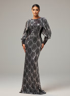 Classic Black Sequin Ballon Sleeve Prom Dress DH80287