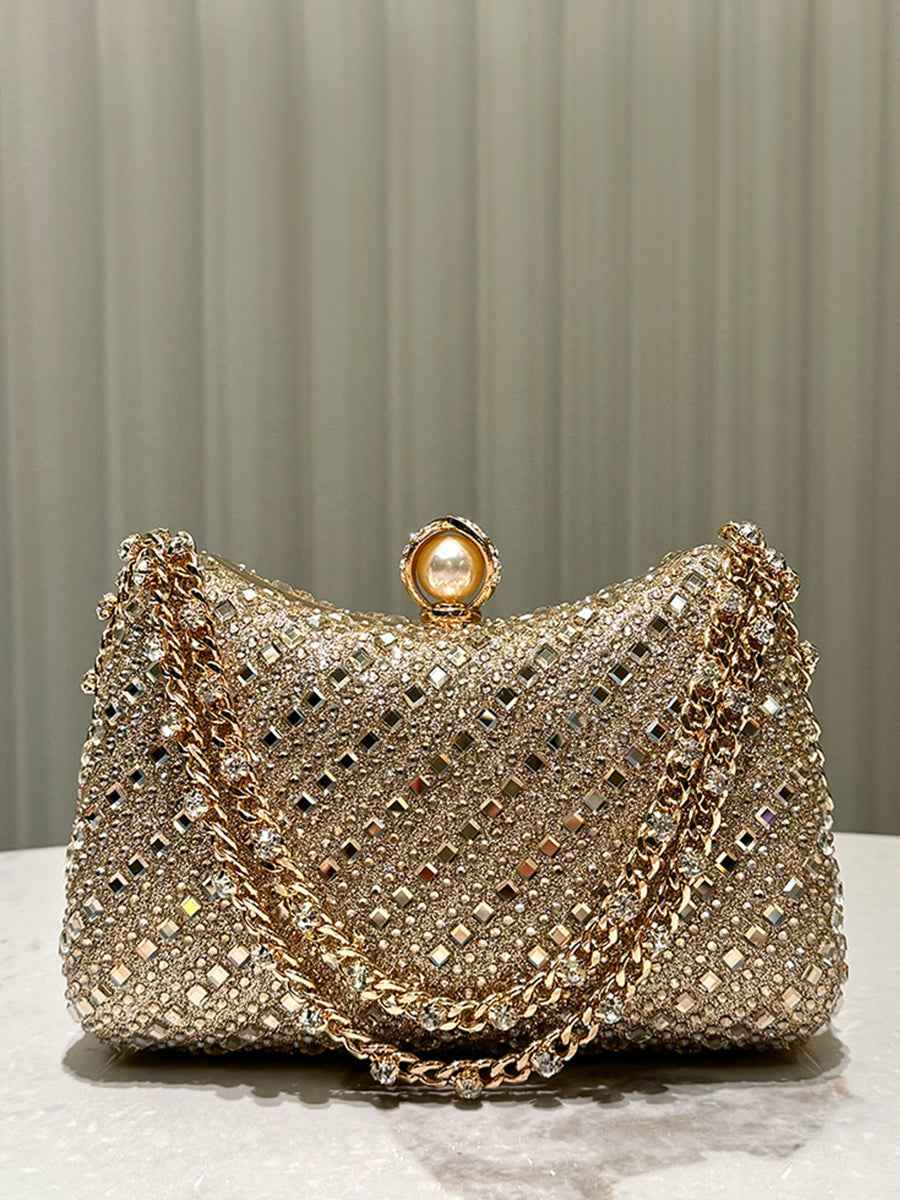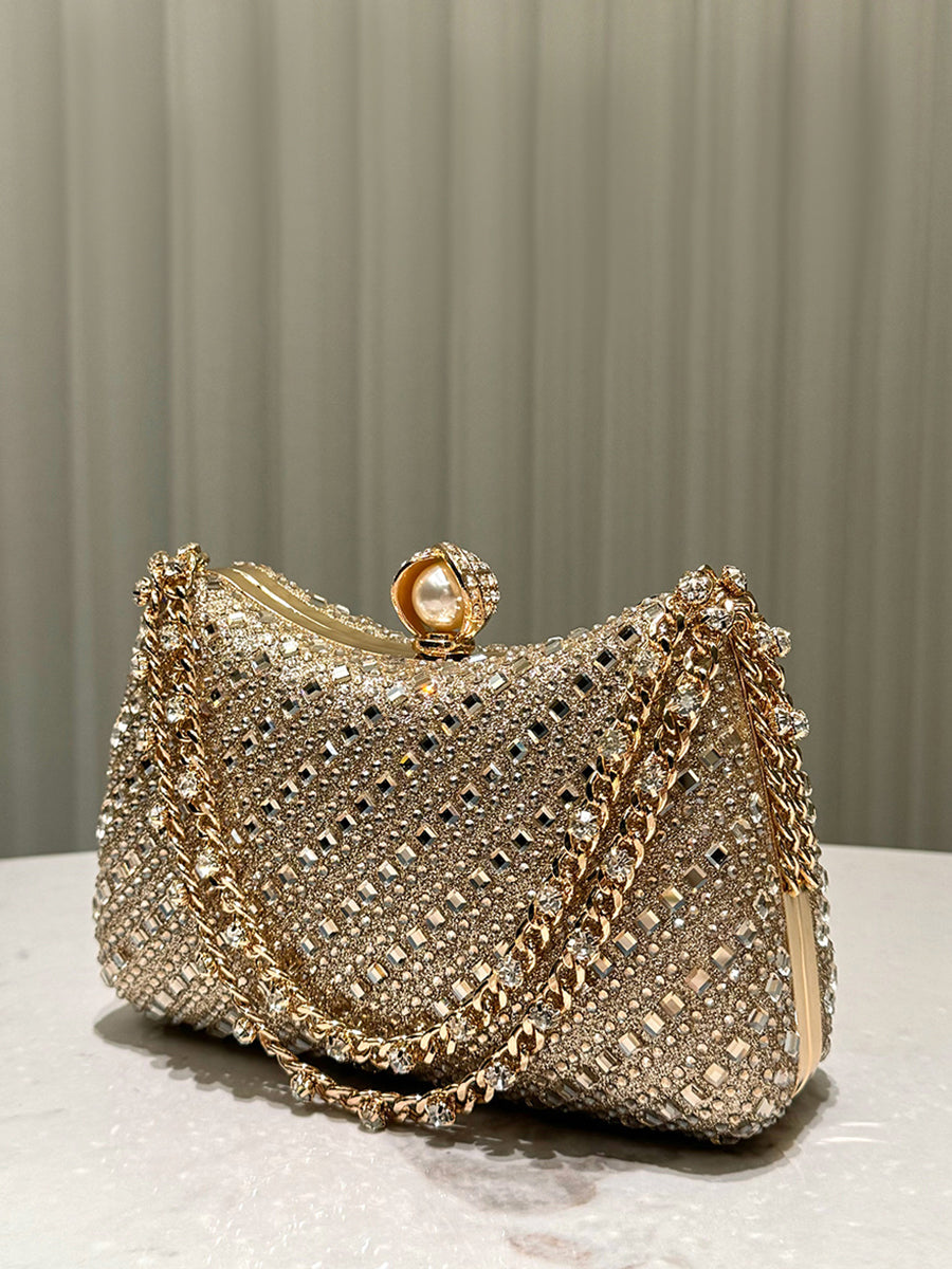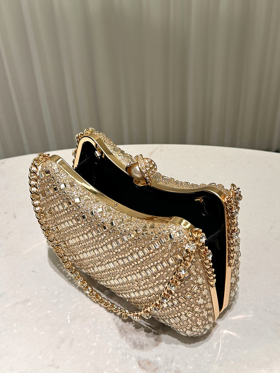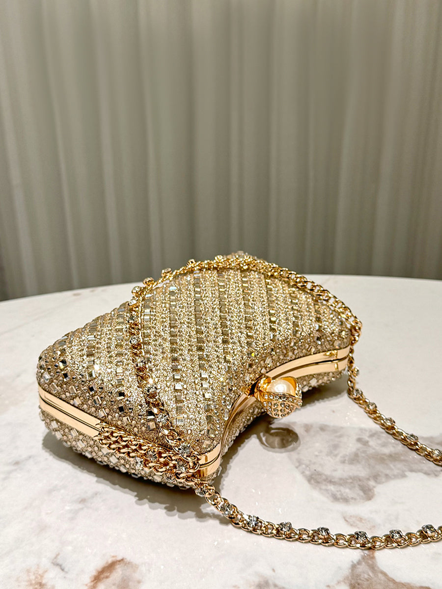 Luxurious Gold Rhinestone-embellished Clutch MNBF117