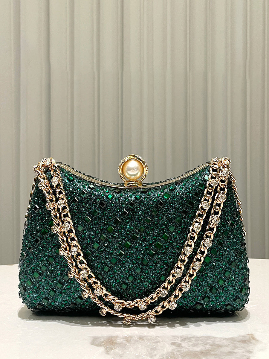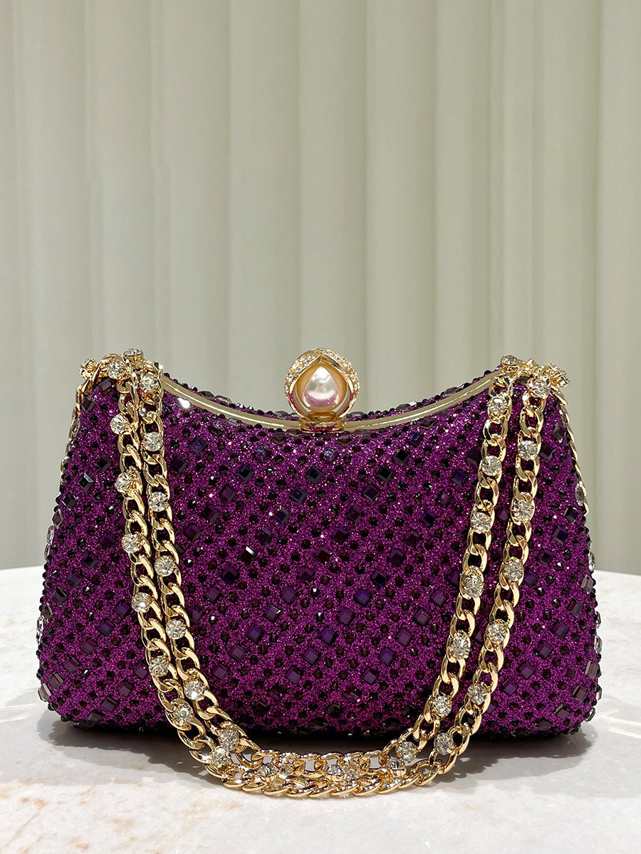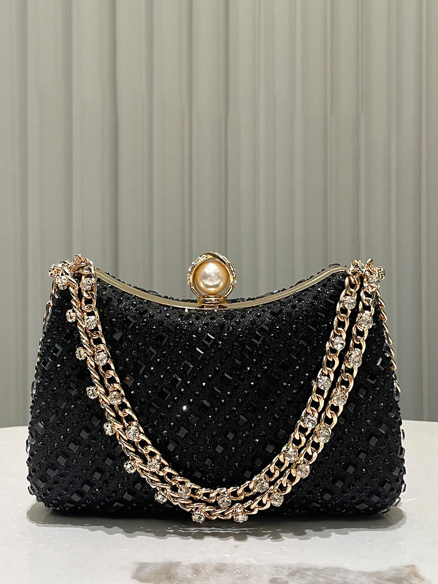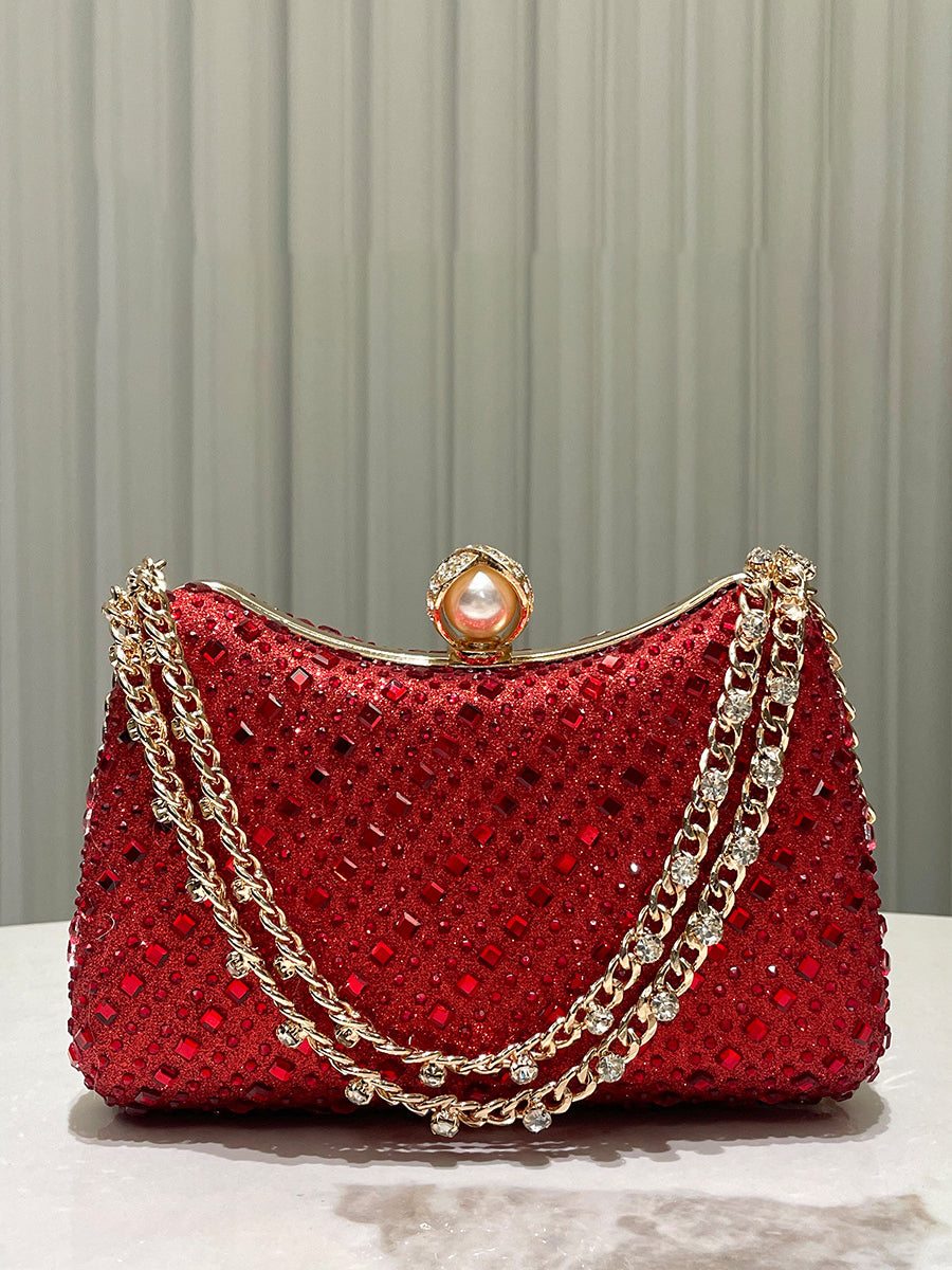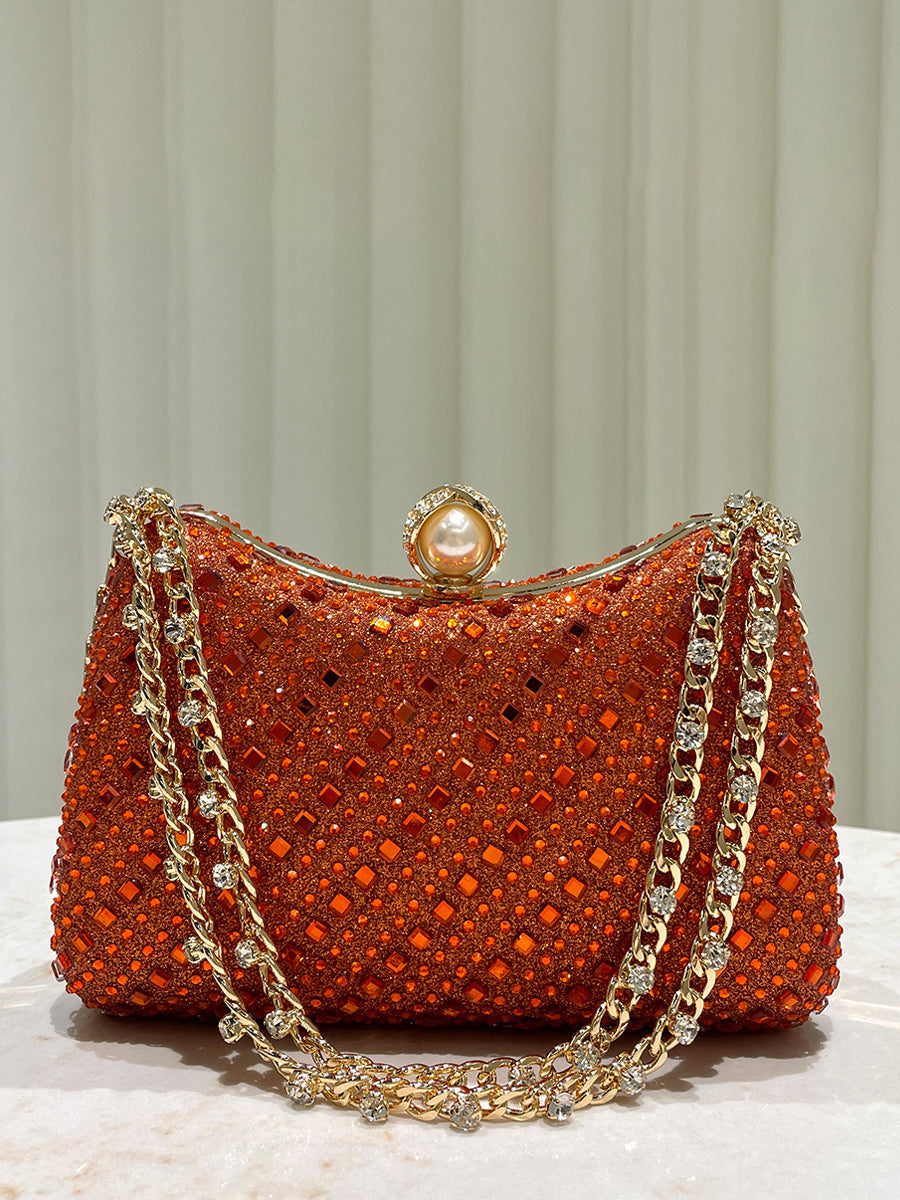 Luxurious Gold Rhinestone-embellished Clutch MNBF117