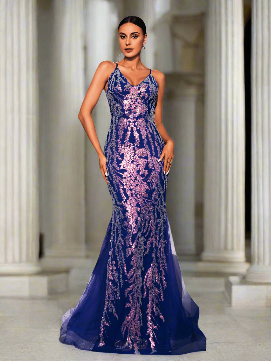 Spaghetti Straps Lace Up Sequin Dress RJ11833
