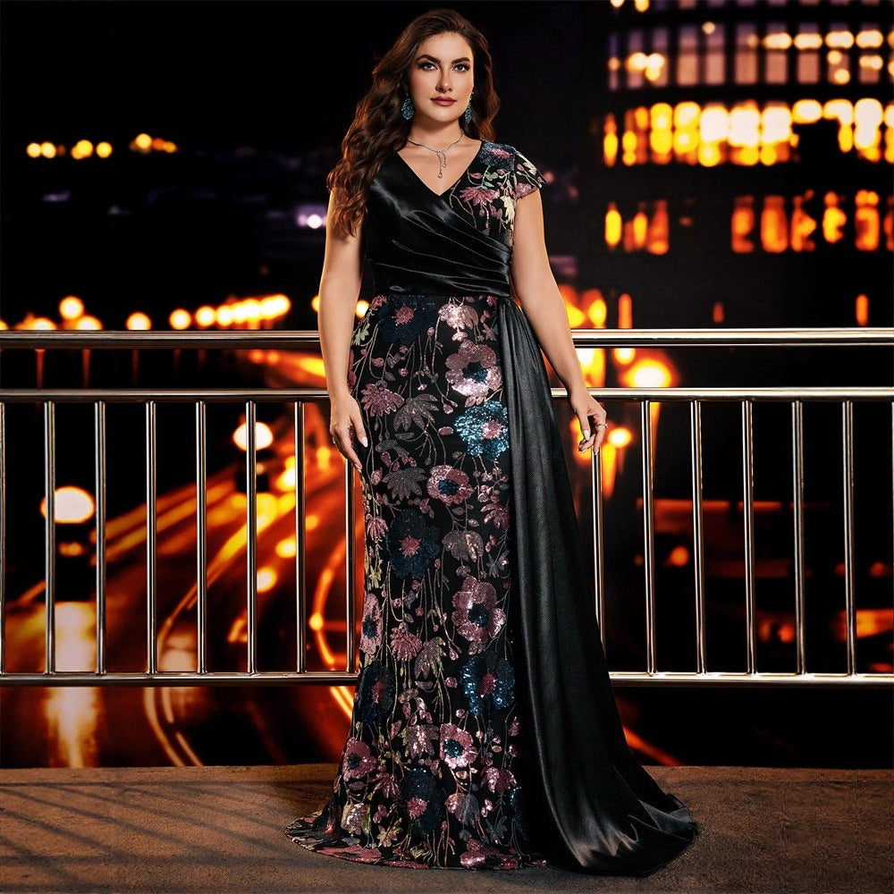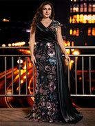 Plus Velvet Floral Sequin Cocktail Dress PXF25133