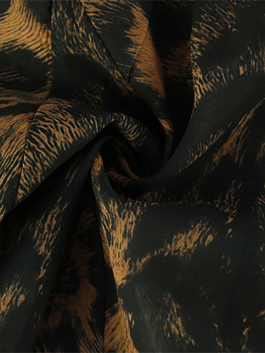 Leopard Print Lace Trim Spaghetti Party Dress XF251333