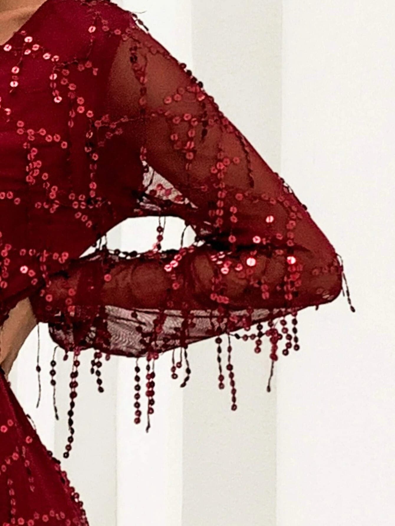 V-neck Wrap Hem Sequin Maxi Dress FT2901
