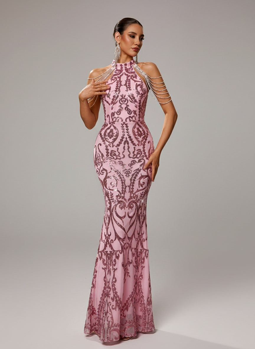 Pink Tribal Sequin Chain Mermaid Cocktail Dress SL30101