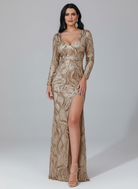 Formal Long Sleeve Gold Sequin Prom Dress M01970