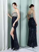 Slit Thigh Backless Green Sequin Formal Dress M02095