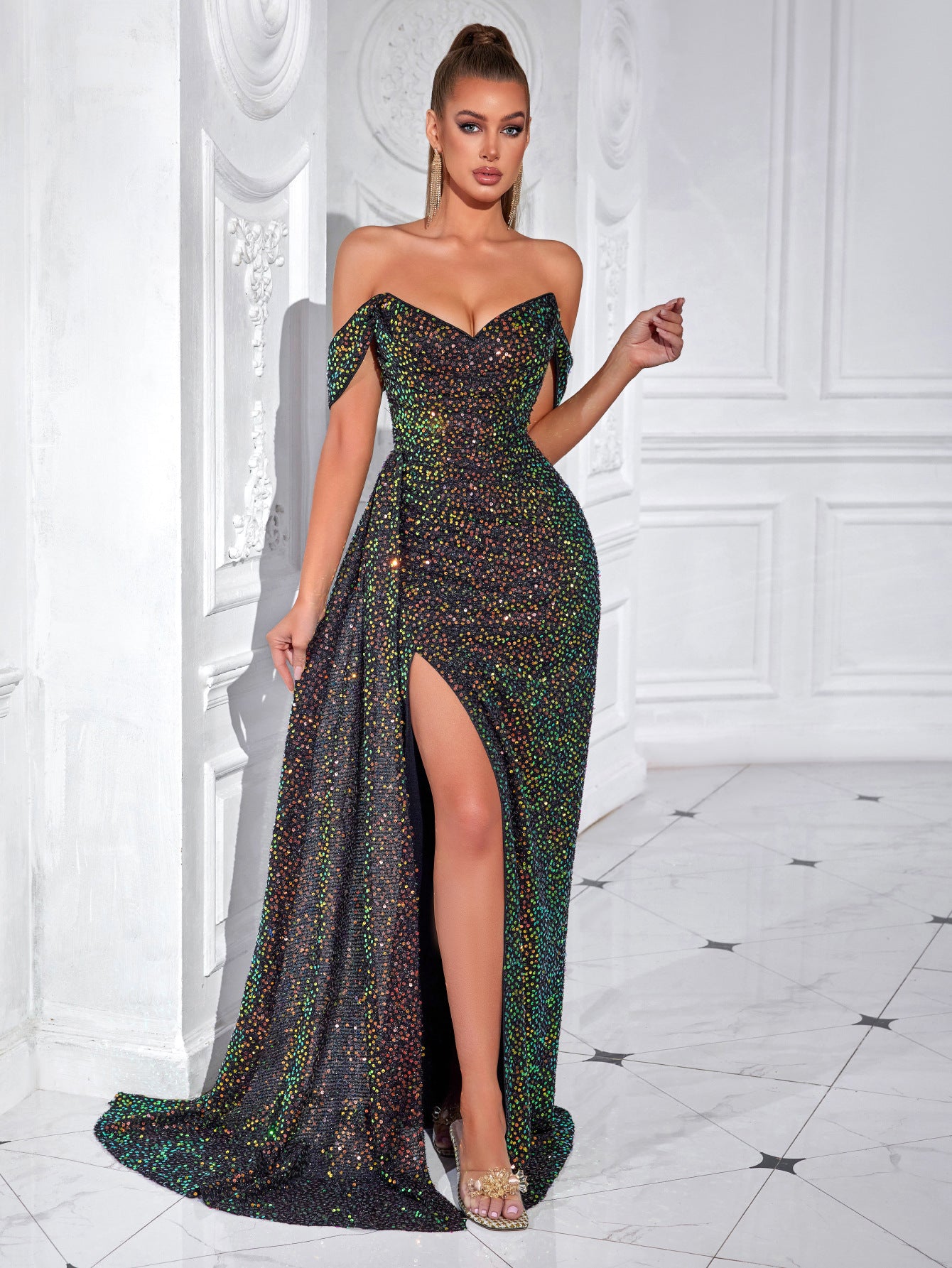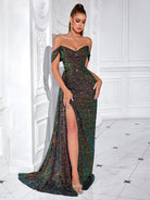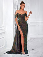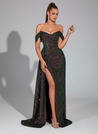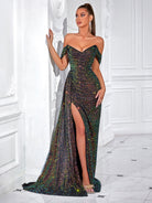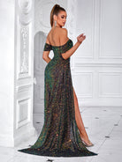 Sequin Off-Shoulder Draped Slit Prom Dress XF250123