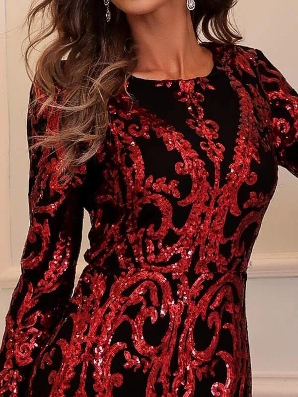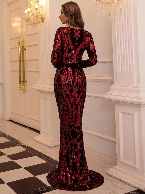 Damask Red Sequin Mermaid Hem Prom Dress M0730
