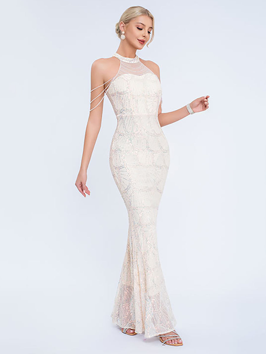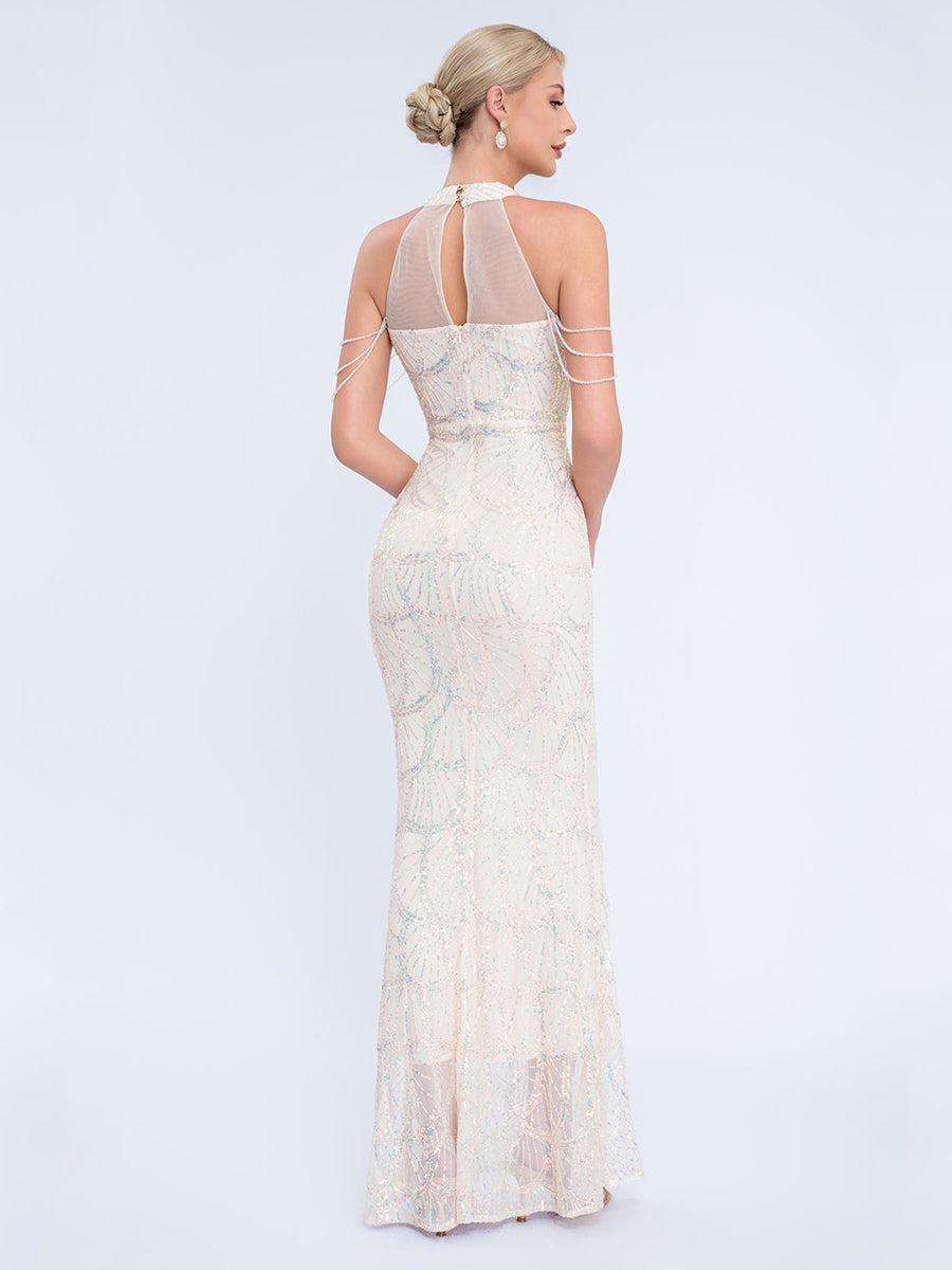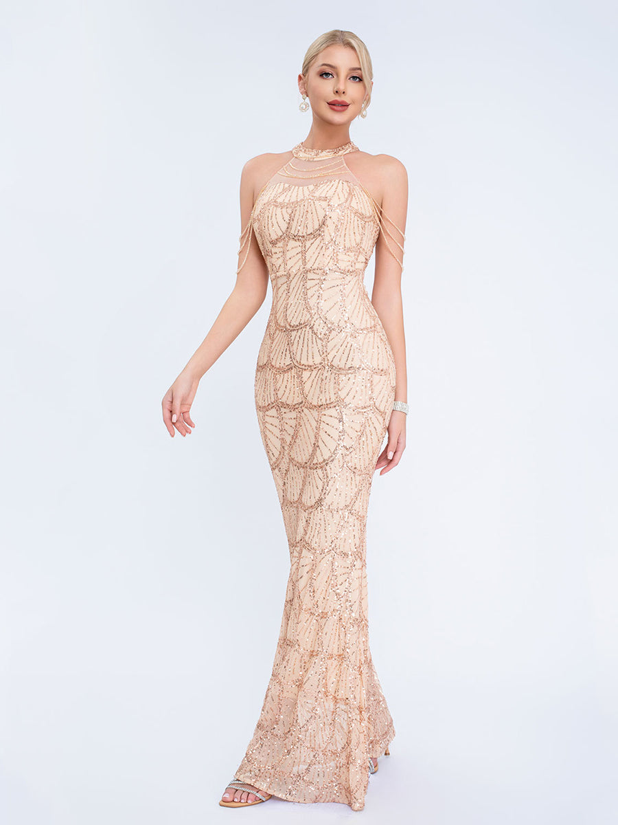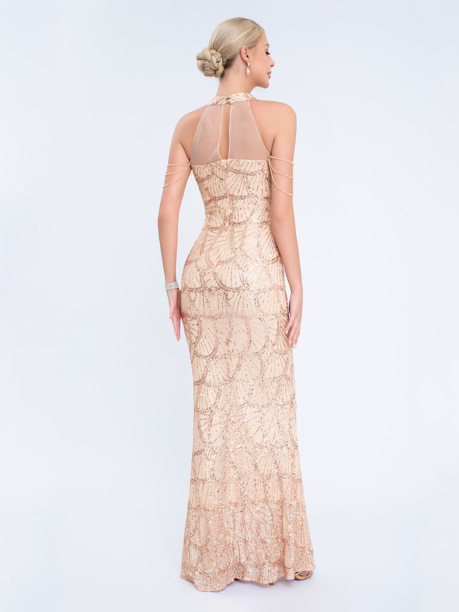 Chain Sleeve Sequin Opulent Formal Mermaid Dress XF251280