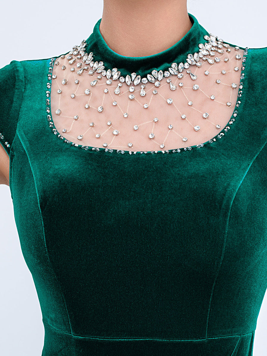 Green Velvet Elegant Rhinestone Cocktail Dress XF251278