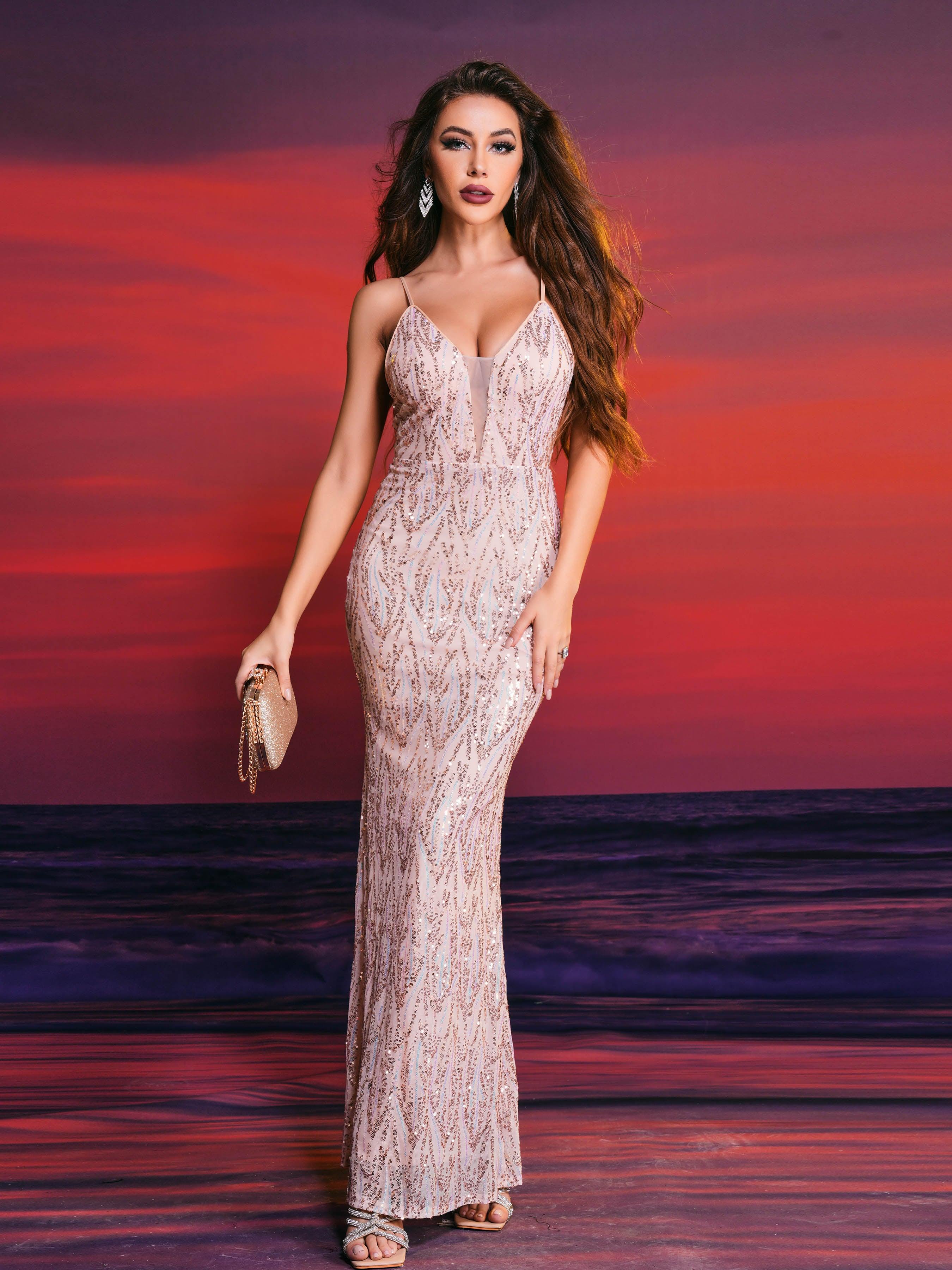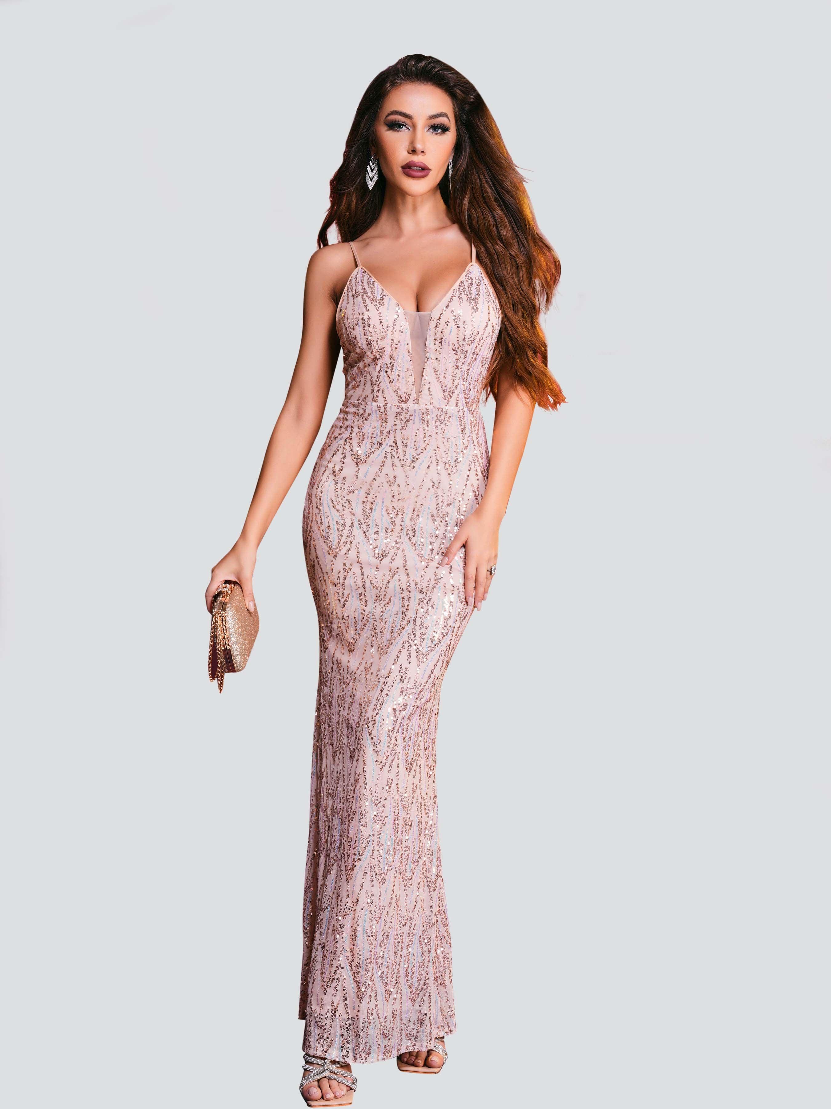 V-neck Sleeveless Sequin Maxi Dress XH1589